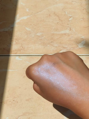 Apply a small amount of the iridescent highlighter to the high points of the face—such as the cheekbones, brow bones, nose bridge, and cupid’s bow. Gently blend using your fingertips for a soft, luminous glow. Build as desired for a more radiant finish.